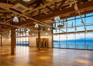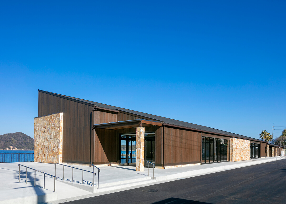物販棟にはアウトドアショップが入り、カヤックやトレッキングなどのイベントも開催されます。飲食棟では地元食材を使った料理が提供され、海を眺めながらテレワークができるスペースもあります。施設のオープンは、本年4月の予定です。