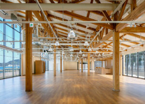 このたび、安芸郡坂町の海水浴場「ベイサイドビーチ坂」に木造の物販、飲食施設が完成しました。木のぬくもりを感じながら、瀬戸内海の豊かな自然を満喫できる魅力あふれる施設です。