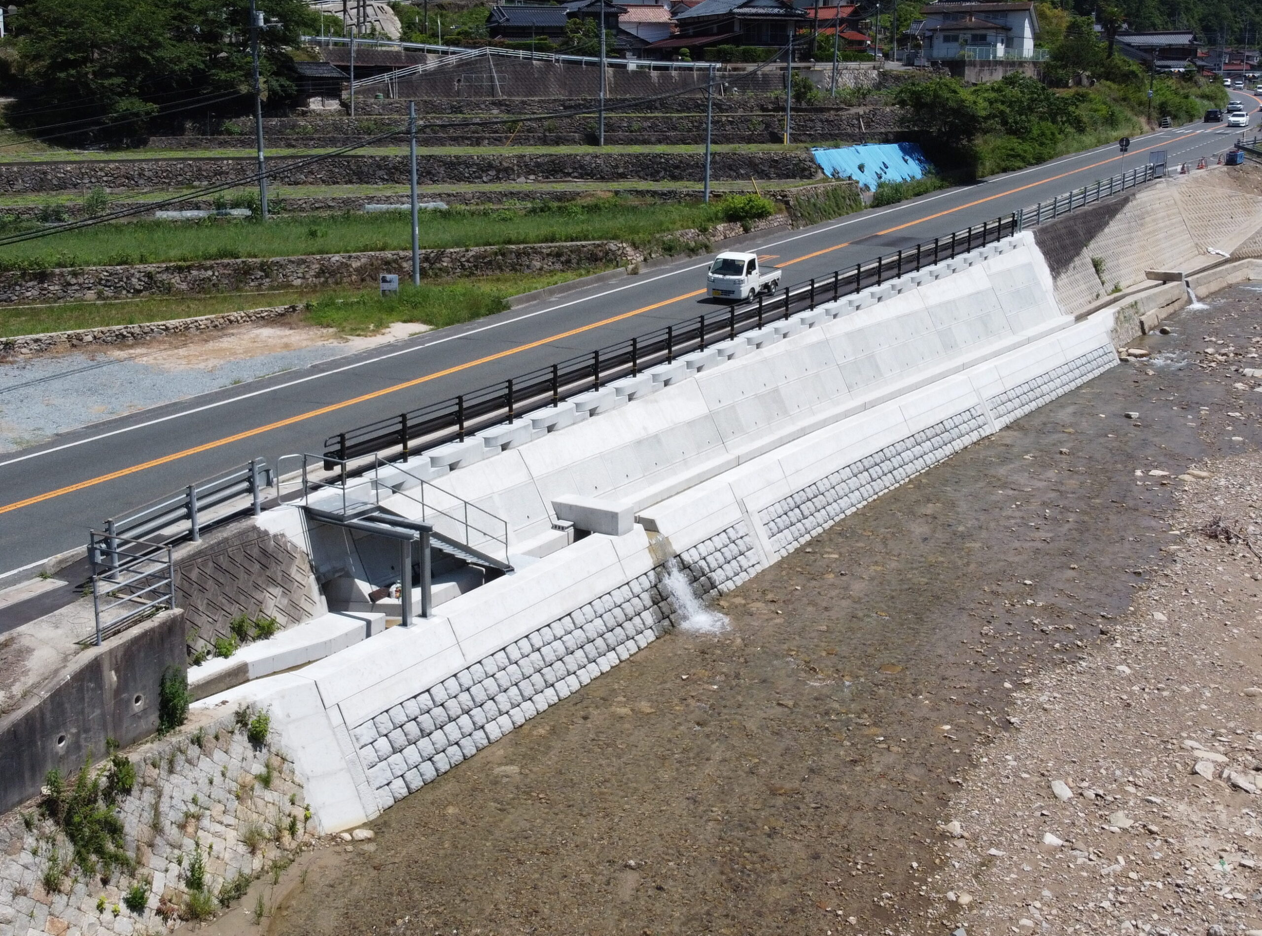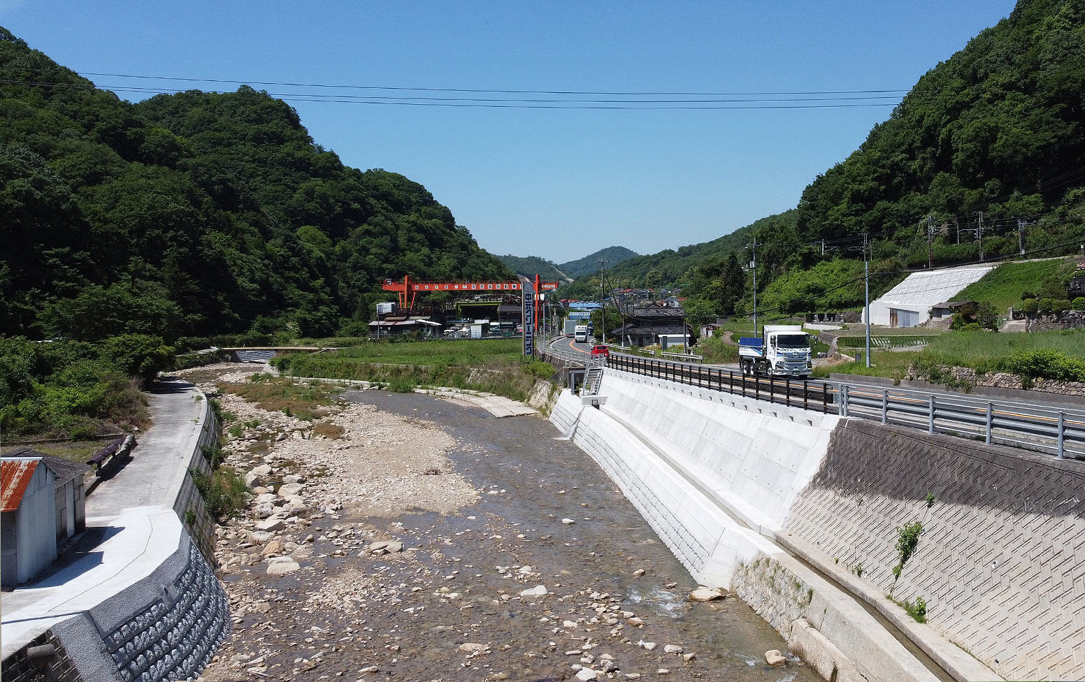 このたび安芸区上瀬野地区の河川護岸復旧工事が完成しました。地域の皆様の日常を取り戻し、安全を確保するため、今後も地元企業としての社会的使命を果たしてまいります。