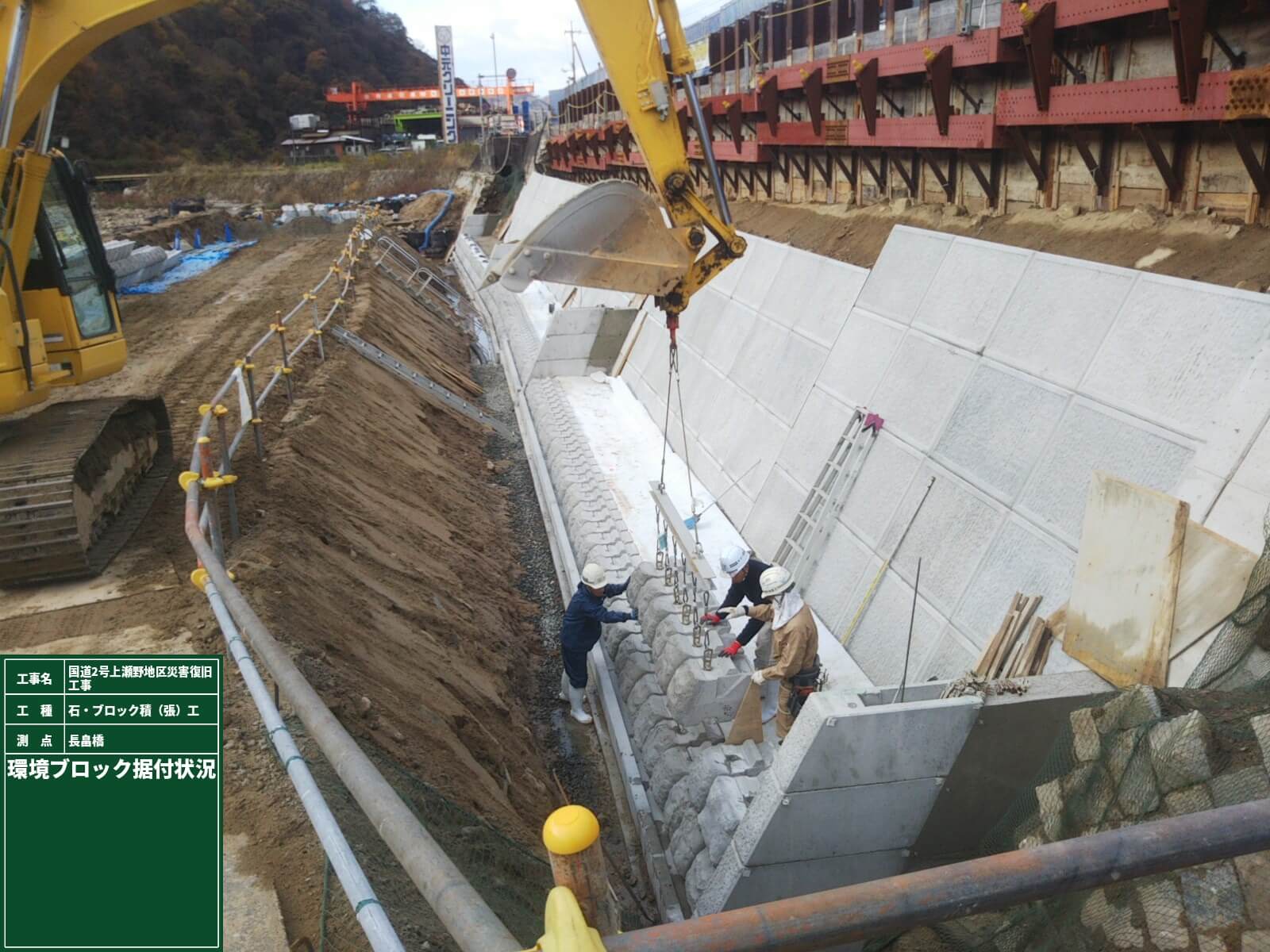| 工事概要 | 応急処理工 仮設工 | 道路土工 区画線工 石・ブロック積(張)工 情報ボックス工 排水構造物工 標識工 舗装工 構造物撤去工 防護柵工 仮設工 |