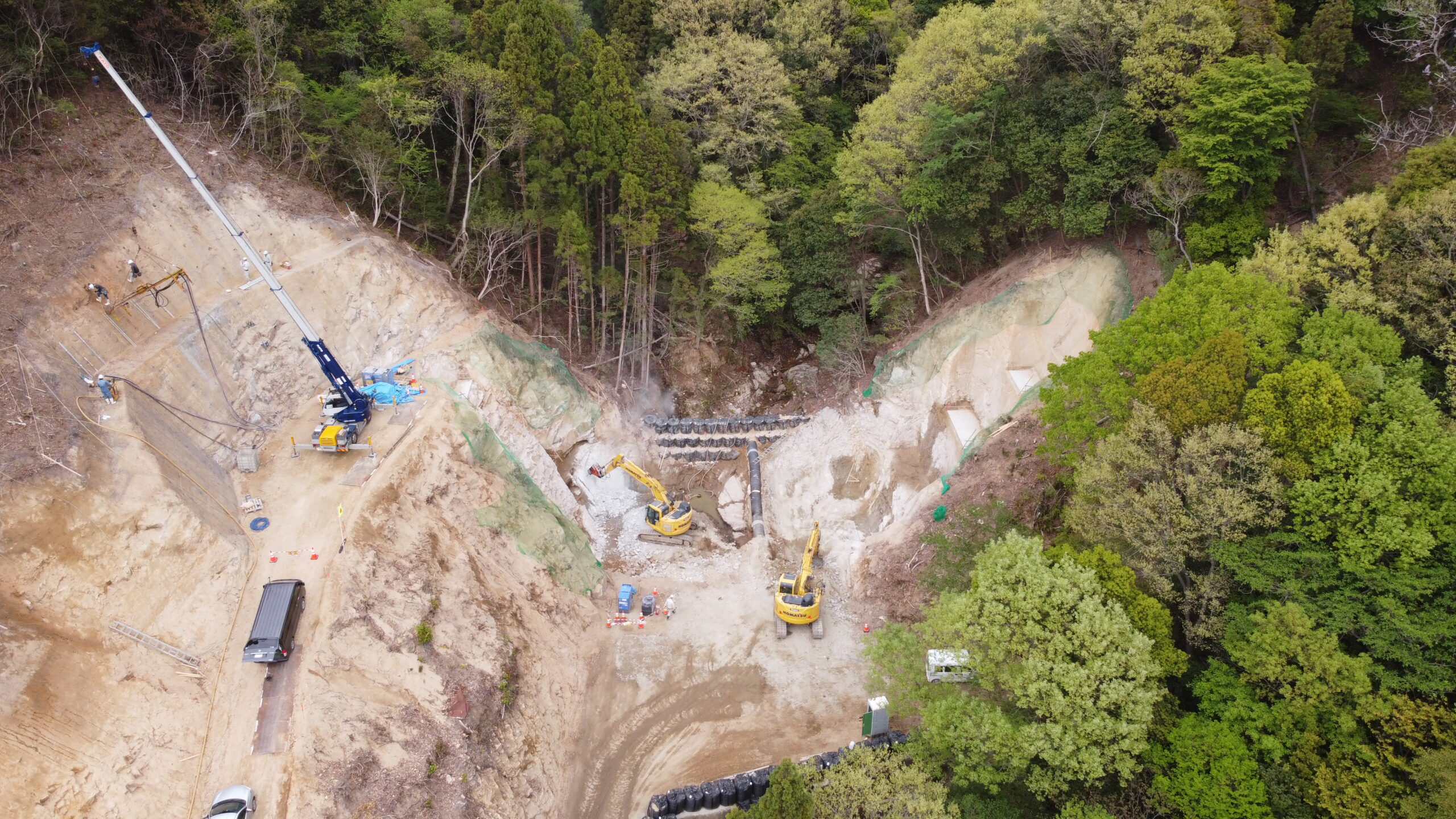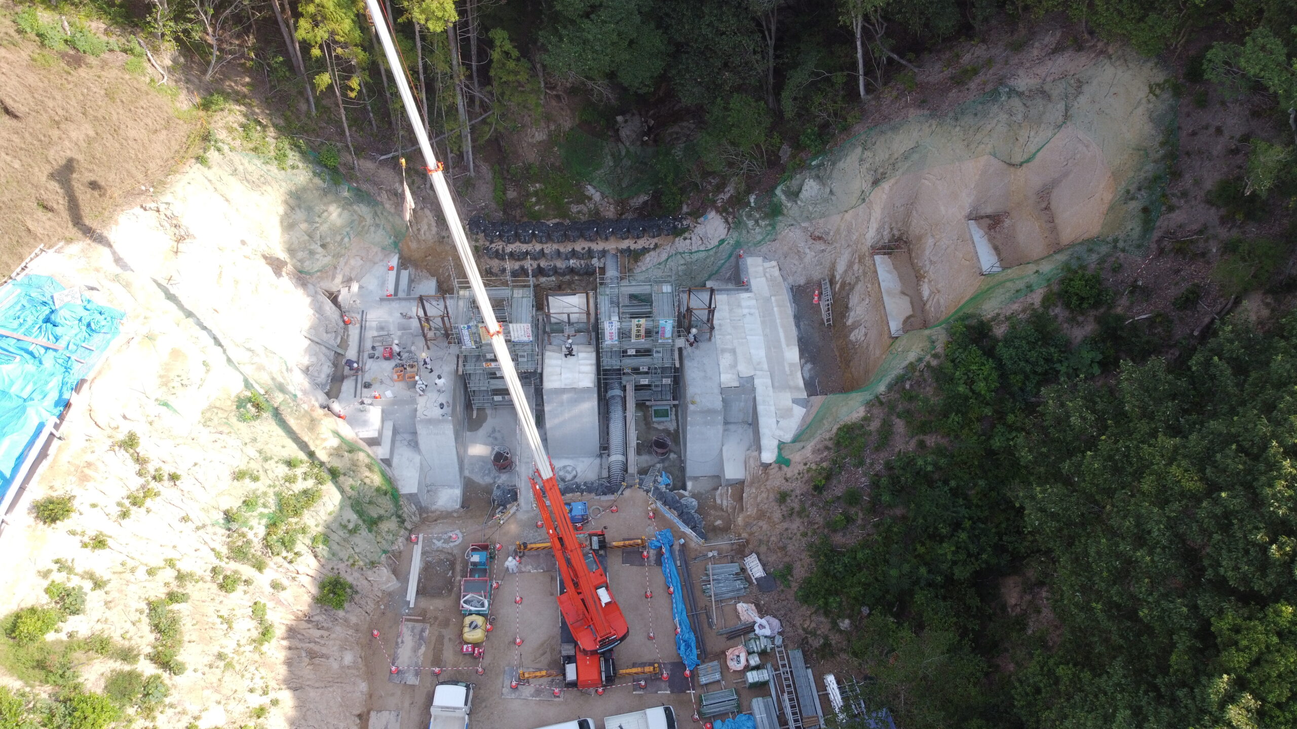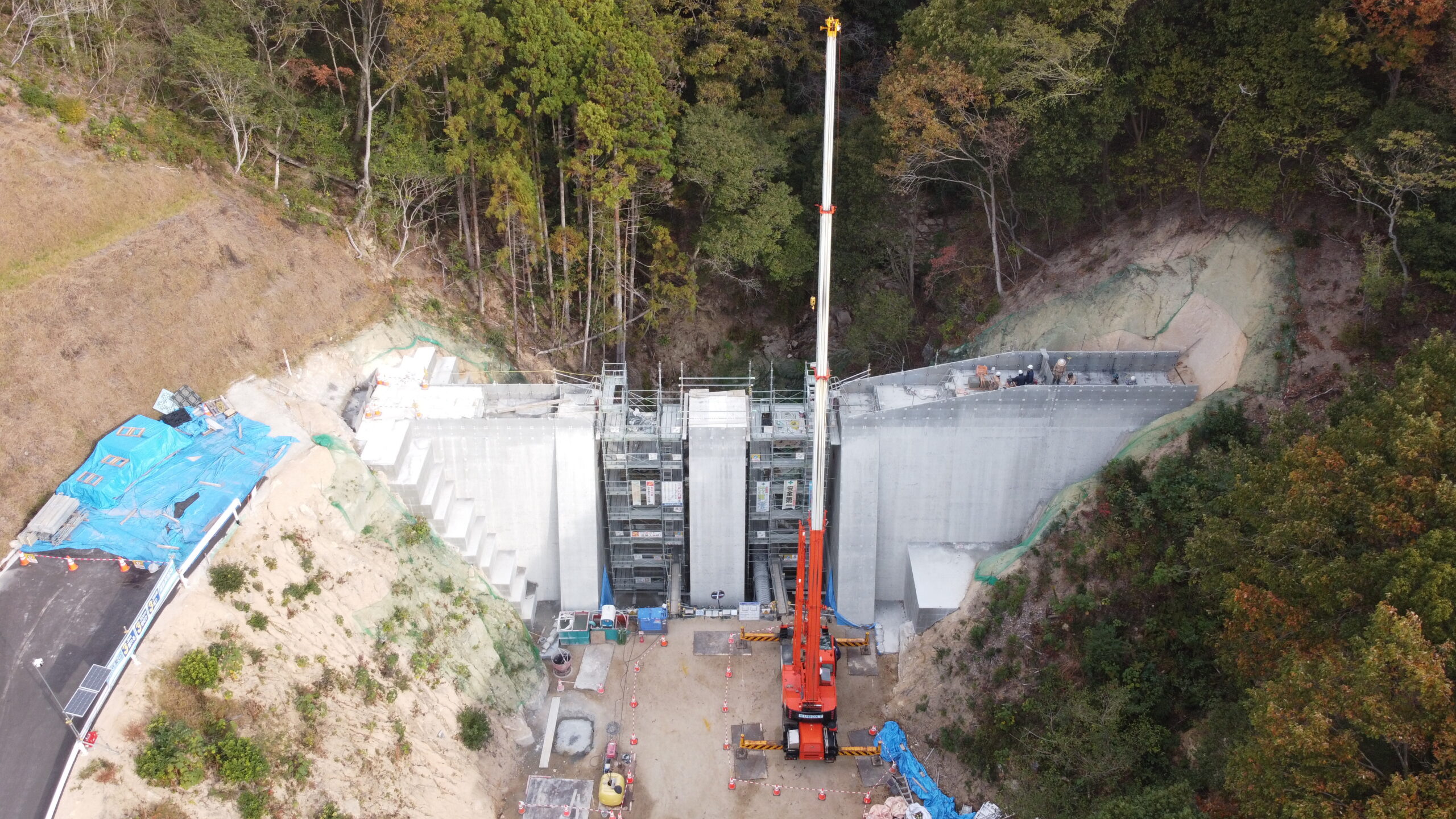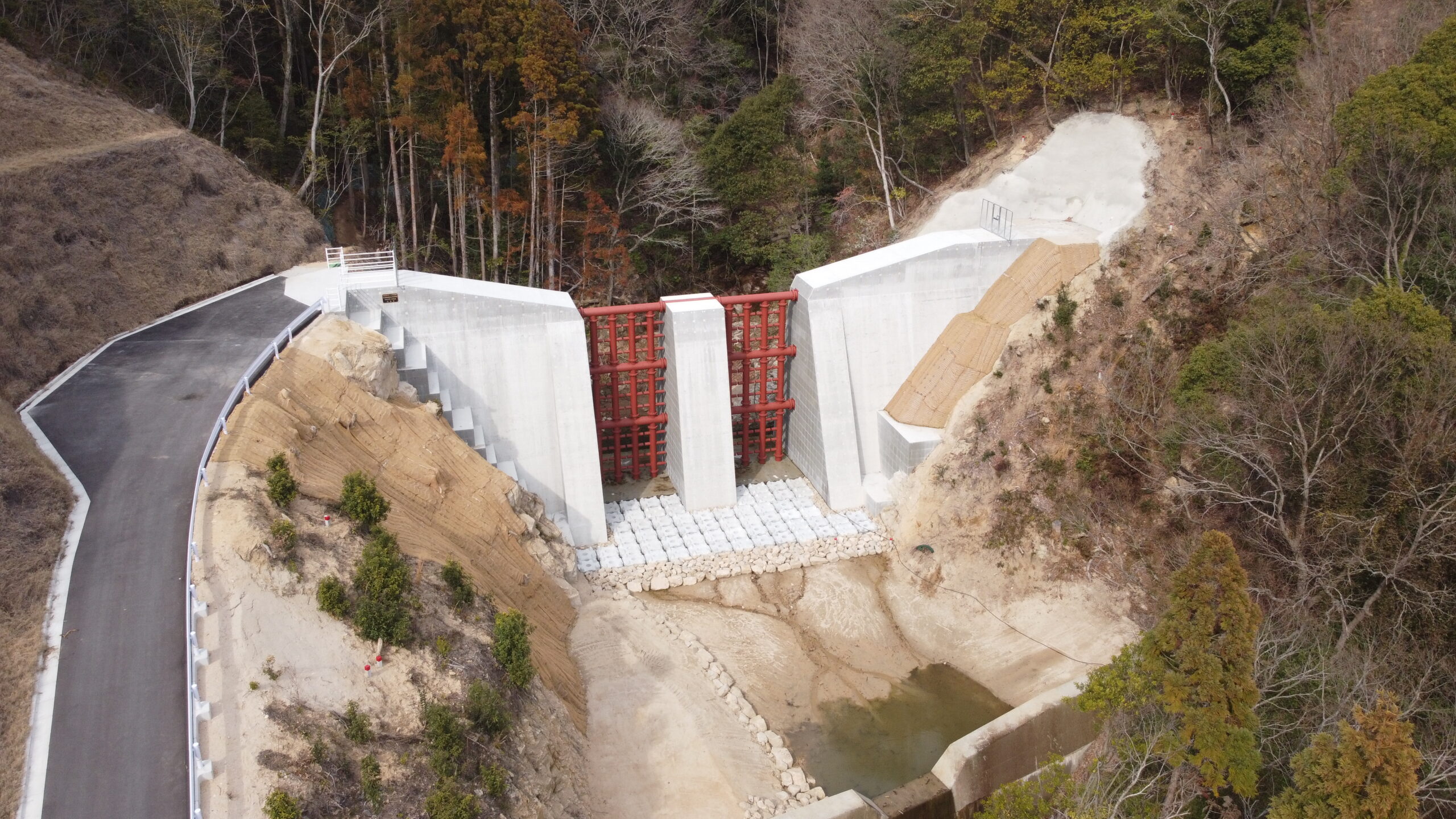 | 工事概要 | 砂防土工(掘削工)・鋼製堰堤本体工(堰堤本体工)・道路付属物施設工・仮設工(工事用道路、付替え道路) |