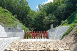 天地川支川1-2砂防堰堤(堤体幅46.0m、堤体高15.7m)