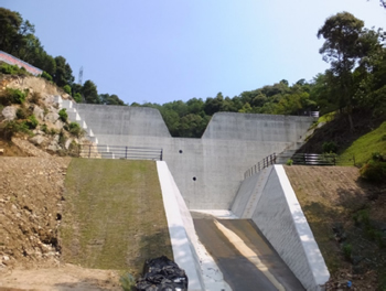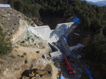 平成26年8月に発生した広島豪雨土砂災害に対する緊急災害事業の一環として、安佐南区緑井地区で施工していた当社担当分の砂防堰堤工事(294渓流、295渓流の二基)が完成しました。