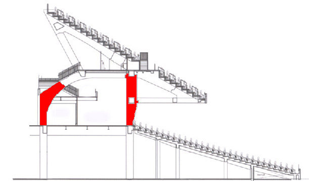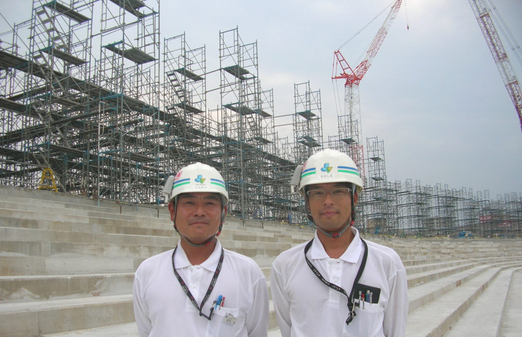 今後躯体工事としては、アッパースタンド(二階席)のPC工事をメインに行い、一階の内部も仕上げ工事へと進
