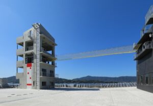 美しい江田島湾を臨む敷地に消防本部庁舎、車庫棟、訓練棟が併設されています。