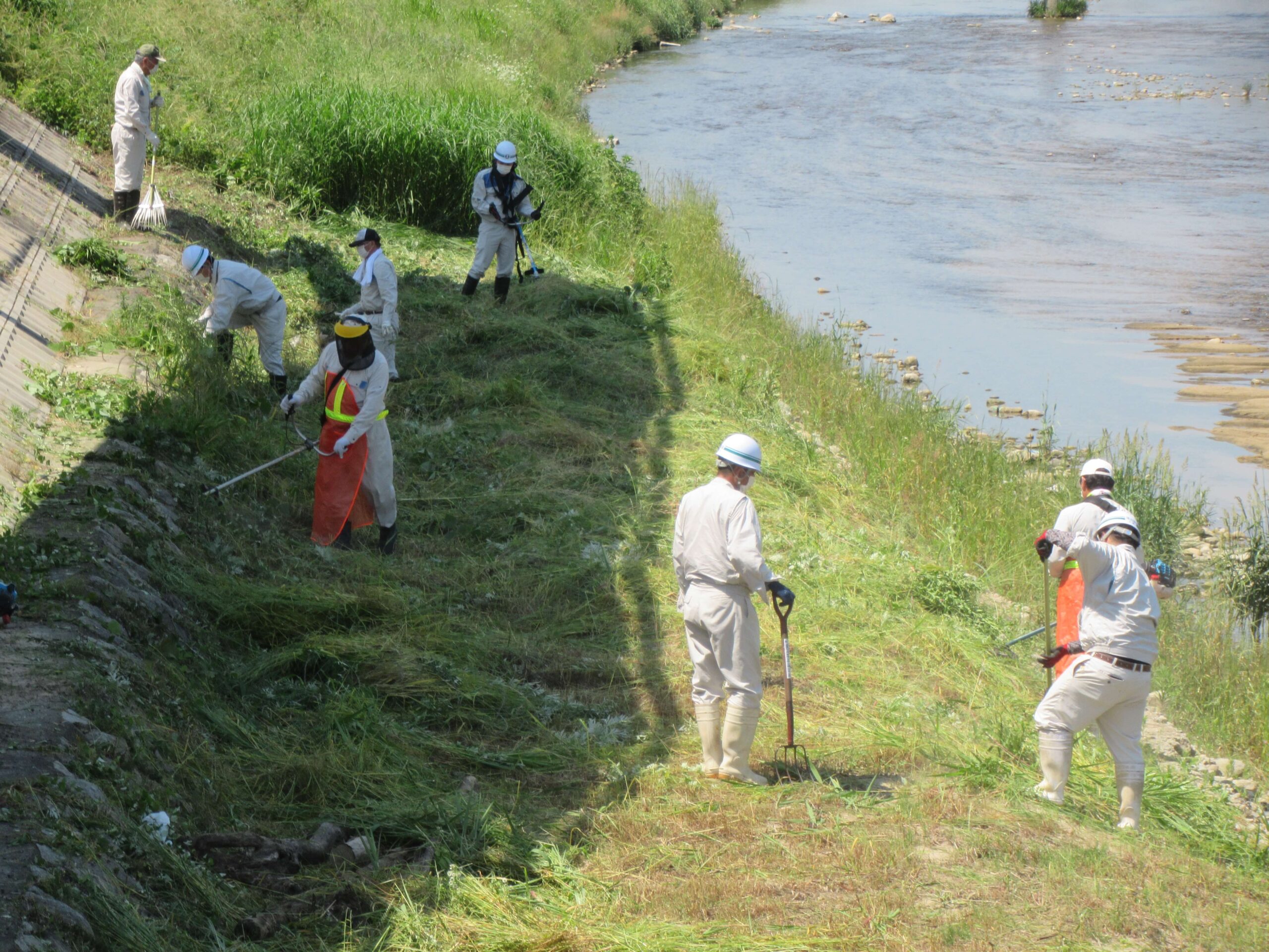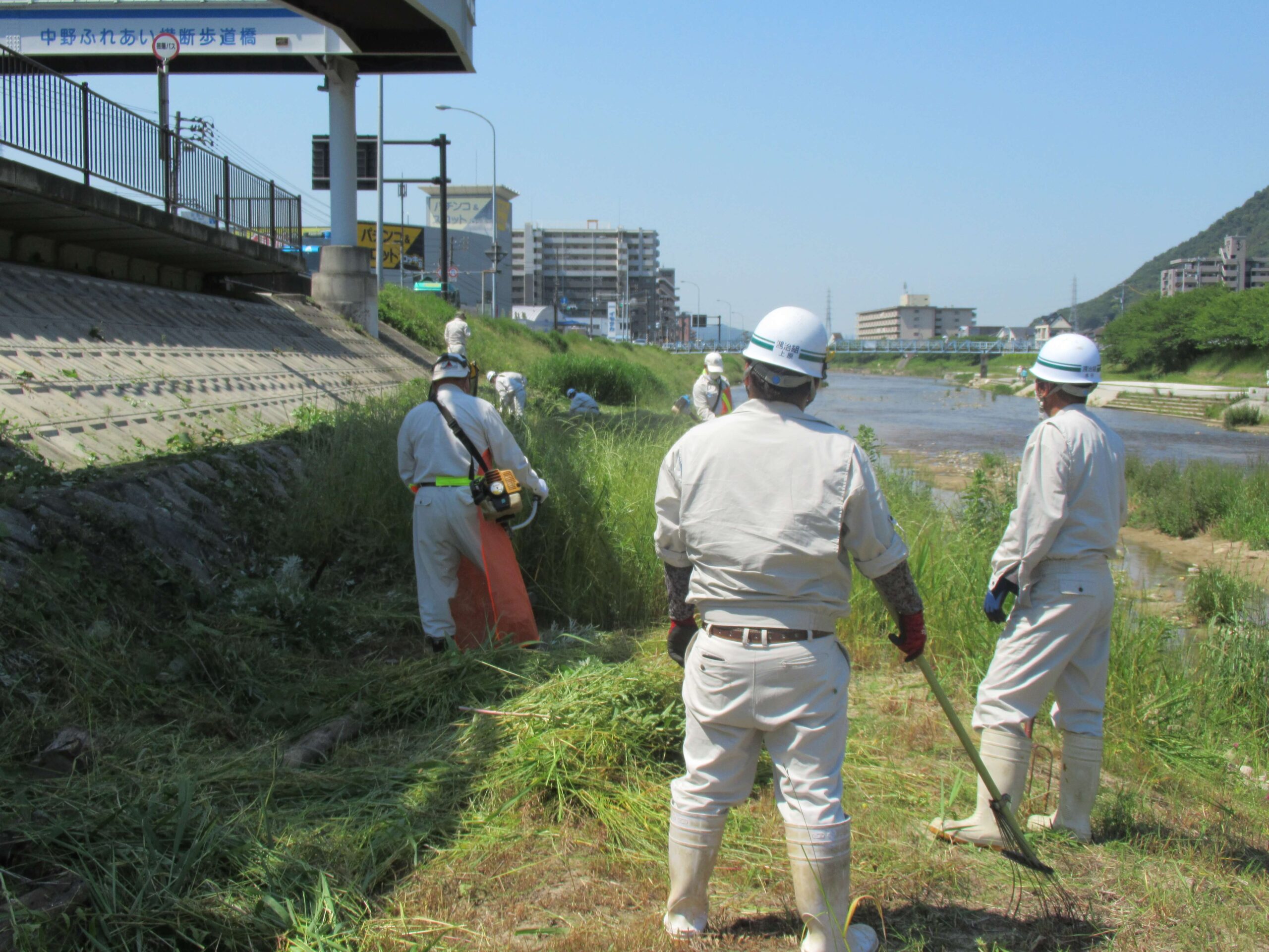 当社では社会貢献活動の一環として、平成20年以降、社長以下本社社員による定期的な道路清掃と河川清掃に取り組んでいます。環境や社会への配慮を重視する持続可能な社会の実現は我々地域の建設業においても重要な企業目標です。