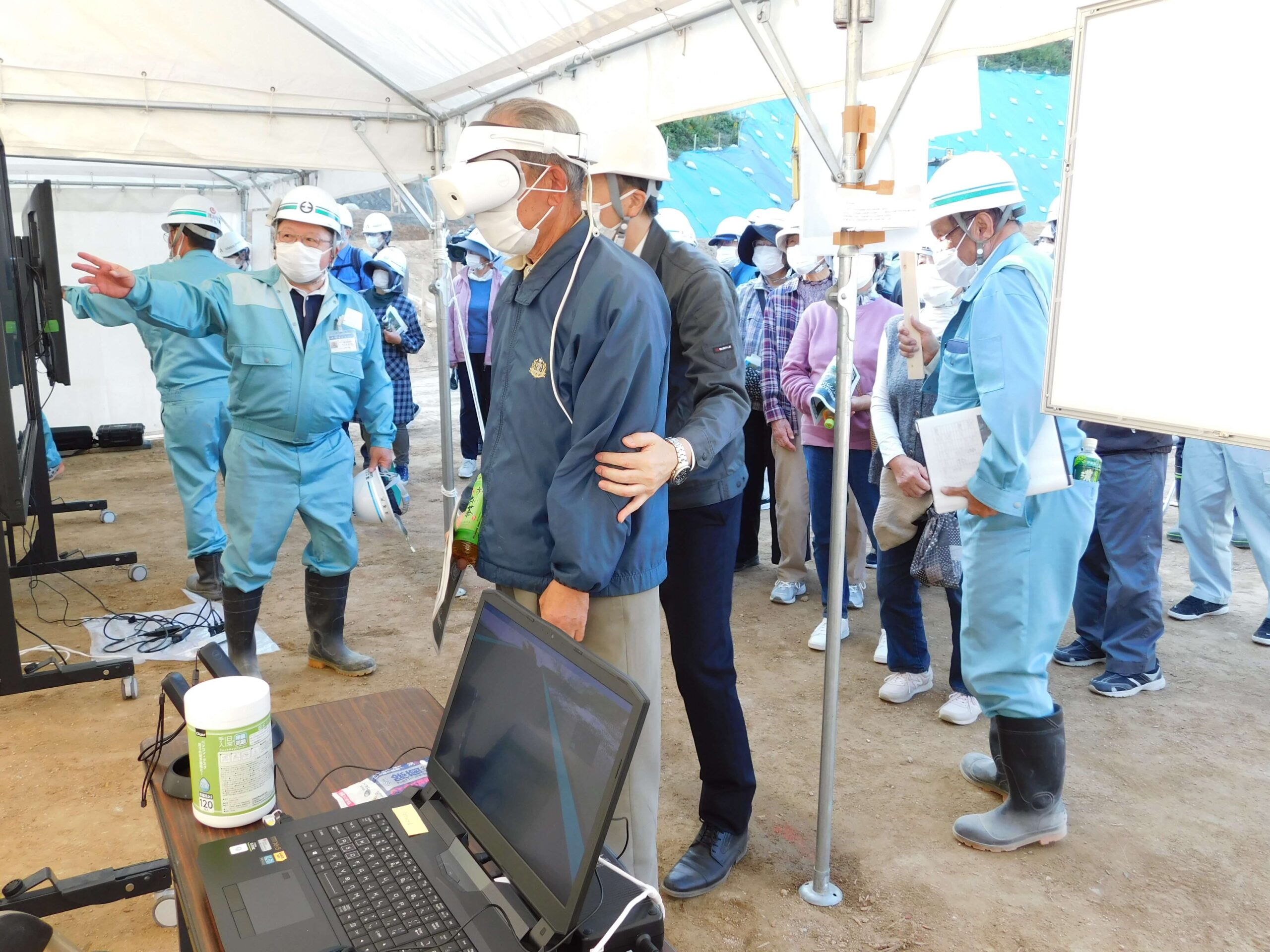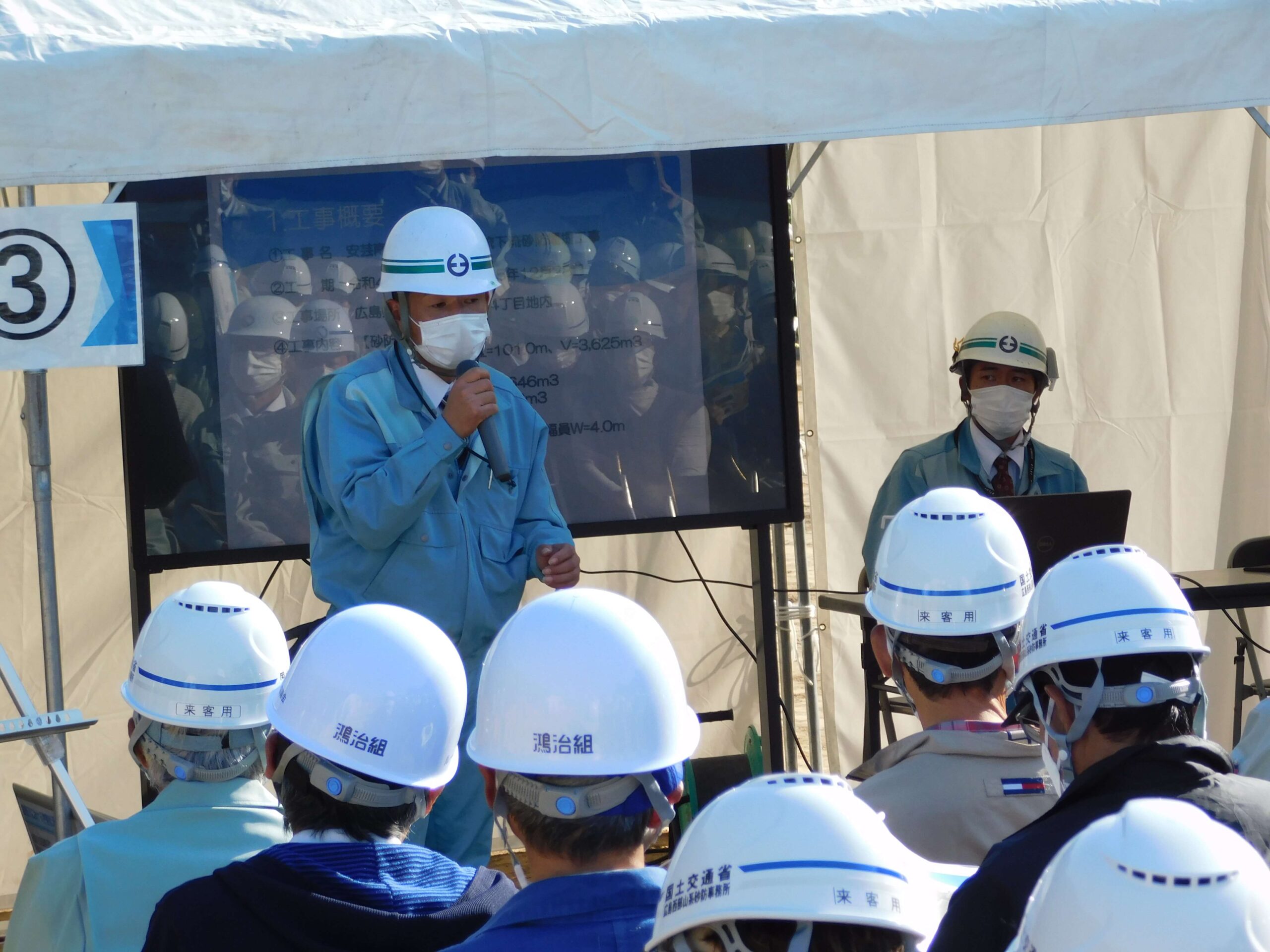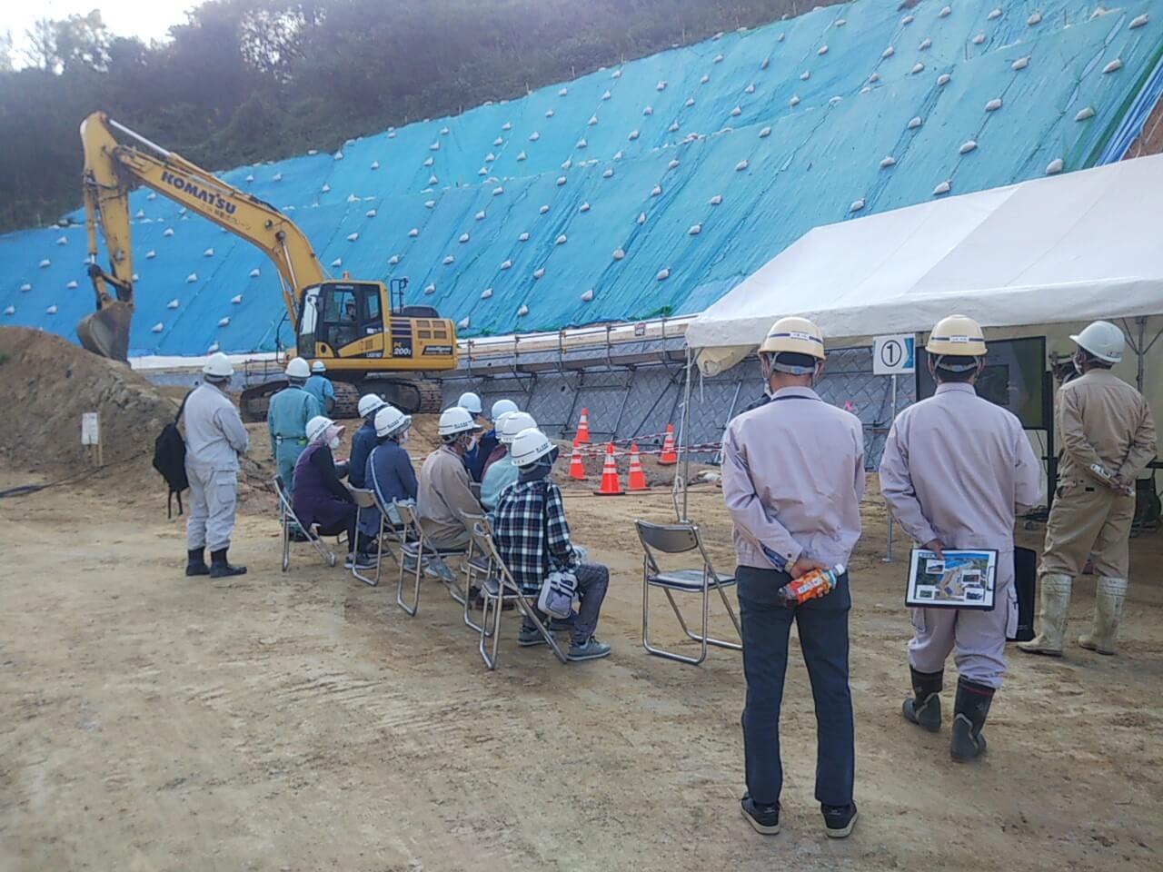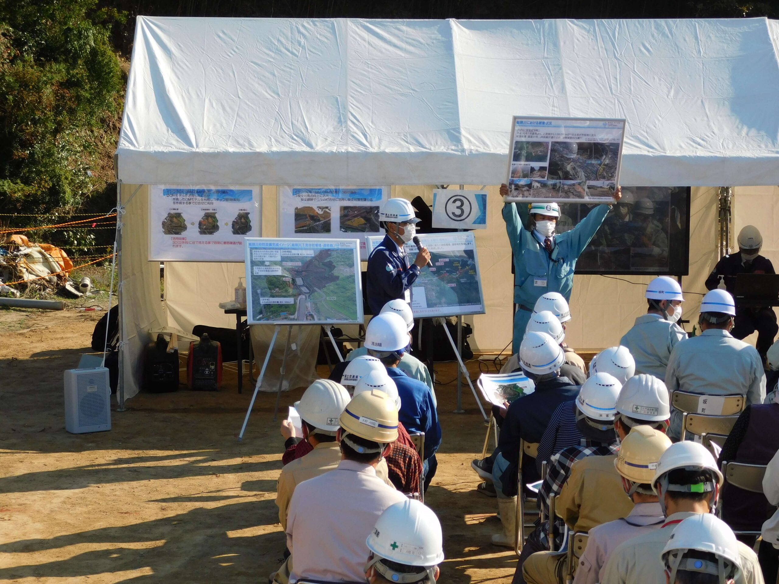 この度、直轄特定緊急砂防事業として施工中の総頭川渓流下流砂防堰堤工事の現場において、国土交通省、坂町のご関係者と共に地元住民の皆様を対象とした現場見学会を開催しました。