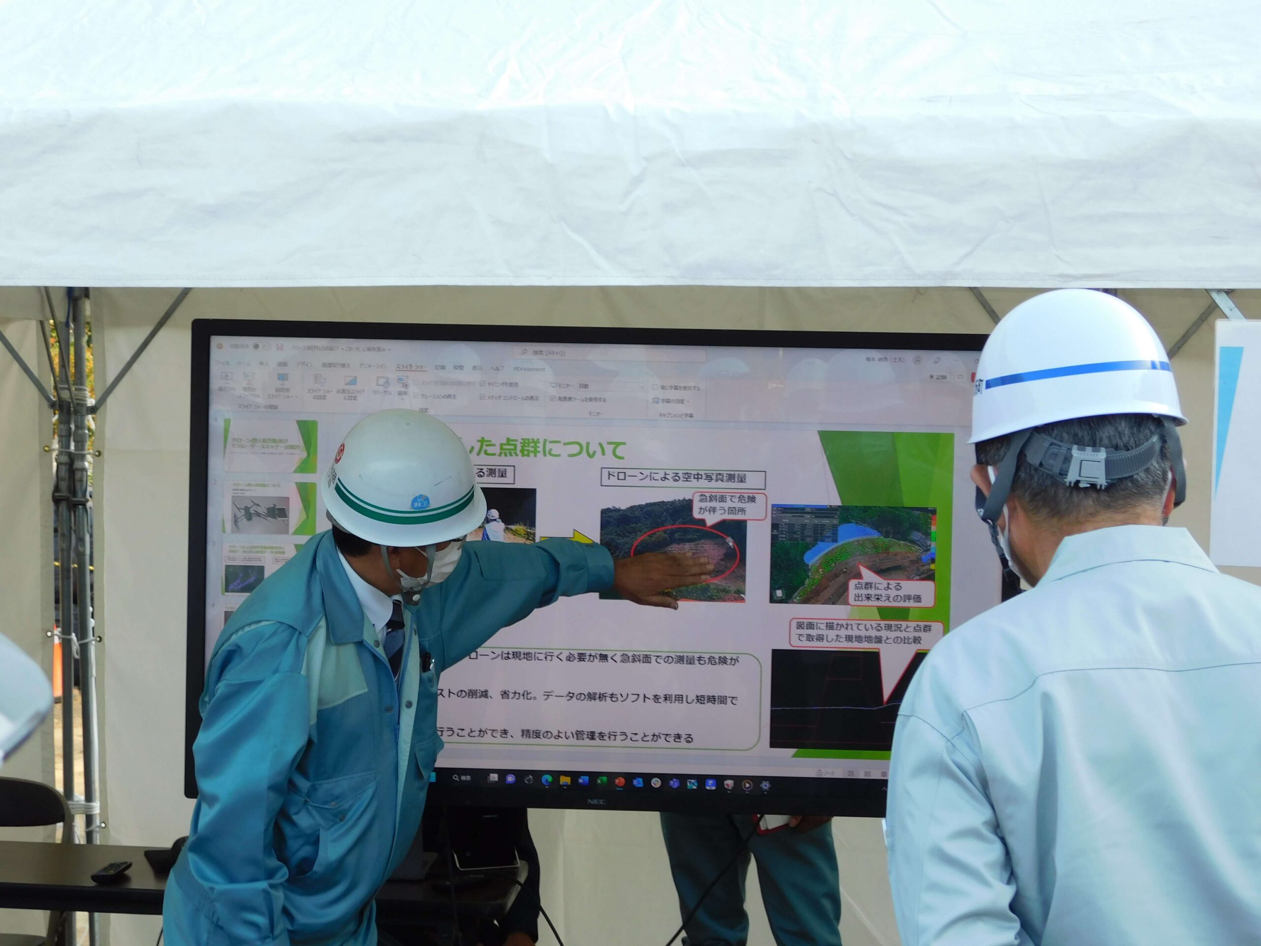 現場では、デジタル化による生産性向上を目的として、3次元データの活用やICT搭載の重機による施工など、最新技術を導入して作業を進めています。