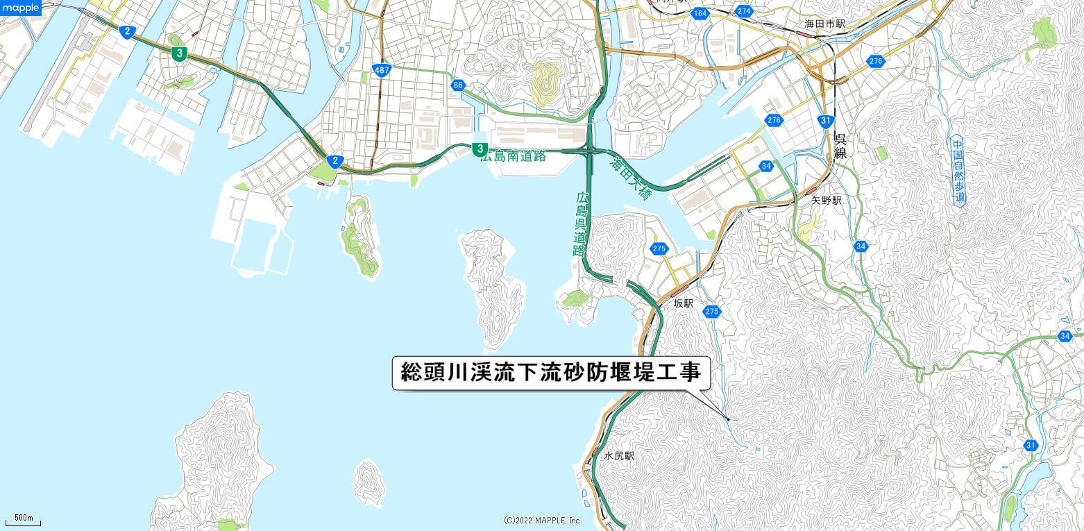 | 工事名 | 令和4年度安芸南部山系総頭川渓流下流砂防堰堤工事 |