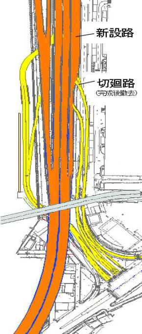 新設路(オレンジ部分) 切廻路(黄色部分) |