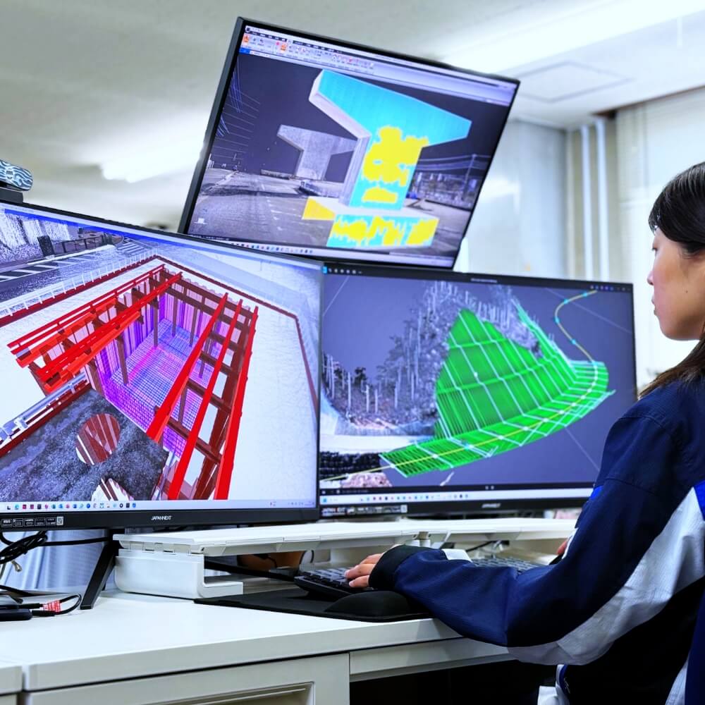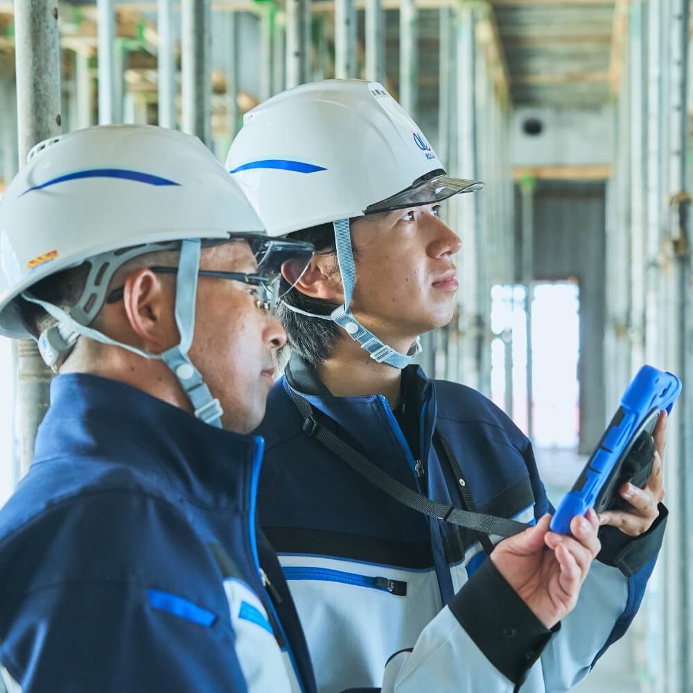 進化を続ける最先端の建設テクノロジーや新工法へ積極的に挑戦。現場やバックオフィスなどあらゆる場面でDXを進めることで、より効率的で高品質なものづくりを加速させています。長い歴史と蓄積された知見に胡坐をかかず、常に向上心を持ち挑戦を続ける社風が私たちの強みです。